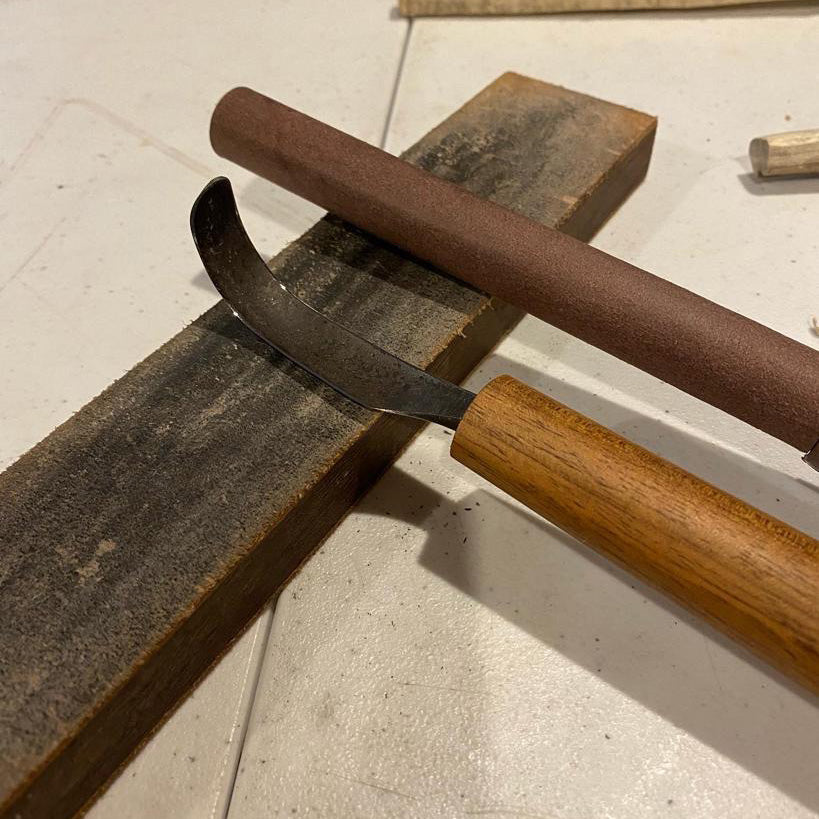 Keeping your tools keen is an important part of the carving process. Chris can show you the best way to sharpen your sloyds, hook knives and axe. Bring your own tools. Sharpening tools are provided and are offered for sale at a discounted price.